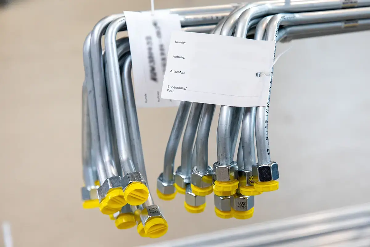 Für unsere Kunden bieten wir auch das Kitting von gewünschten Rohrsätzen für die Produktion. So kommen vorgefertigte Hydraulikrohre konfektioniert direkt zur Montage.